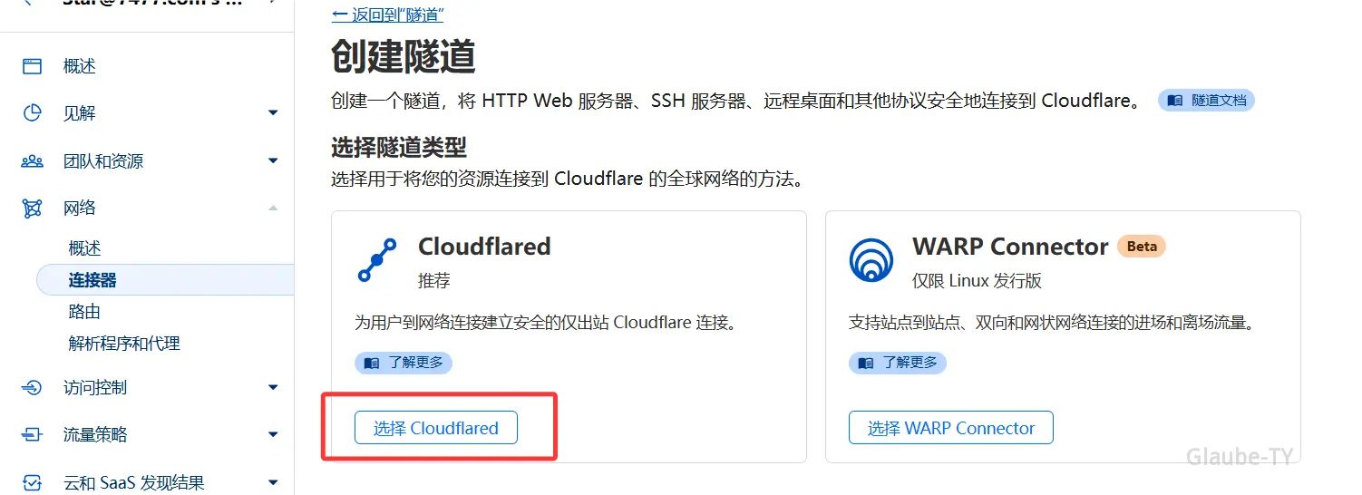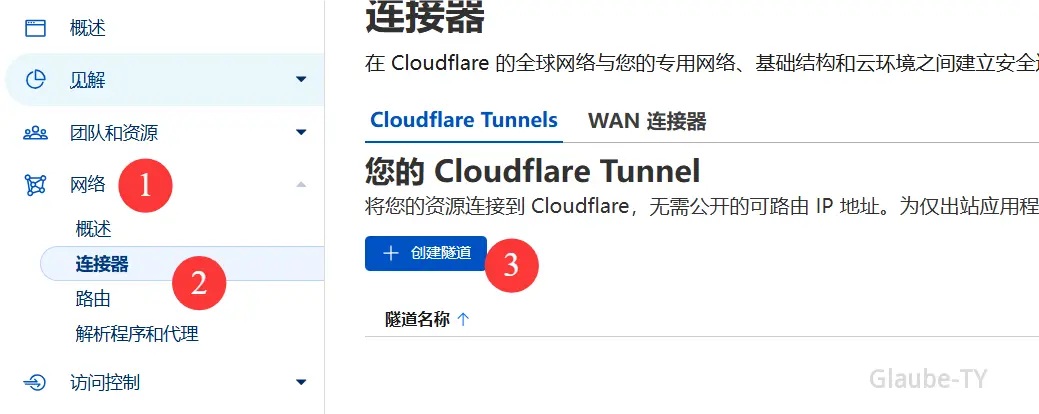网络/network,并点击其中的连接器/Tunnels,首次使用需要激活。点击创建隧道。